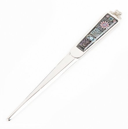 - Double edged sword paperknife for easy slide into envelopes with sweet tassle
