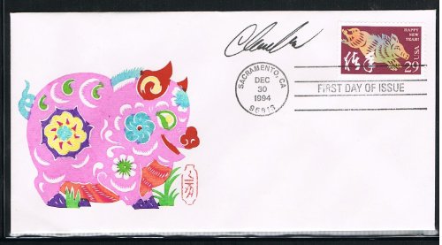 1995 - The 3rd USA Lunar Stamp for The Year of the Boar First Day Cover-Cachet by Handmade Paper-Cut Autographed by Stamp Designer Clarence Lee Review